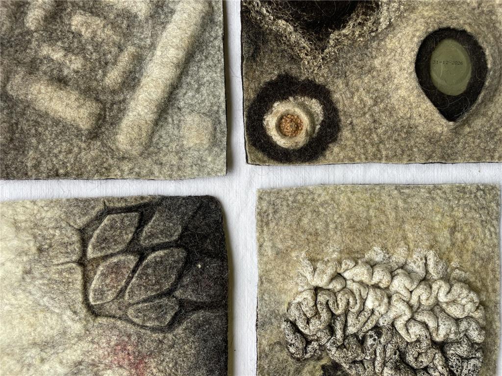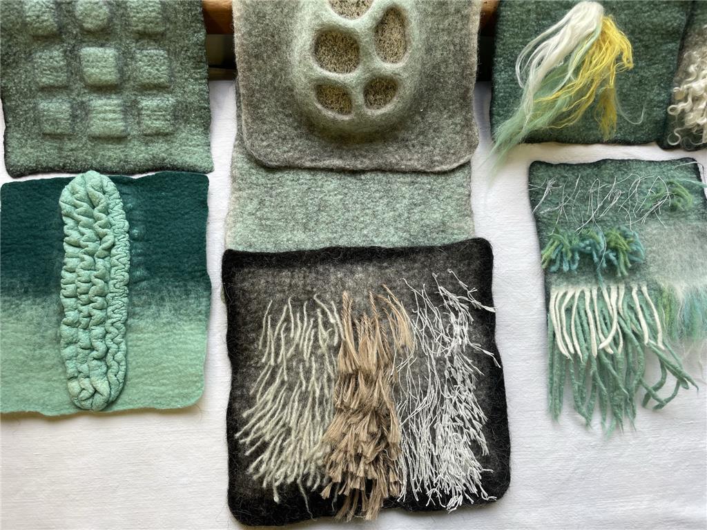 Each sample allows you to isolate one challenge at a time, helping you understand how technique, wool choice, shrinkage, and structure interact, without the distraction of managing a full sculptural form.